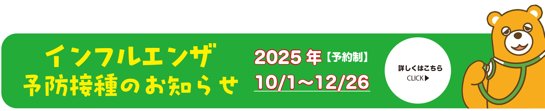 12月2日(火)予防接種・乳幼児健診のみ休み12月5日(金)予防接種・乳幼児健診のみ休み12月27日(土)~1月4日(日)休診